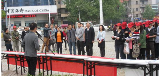 4月21日上午9:00在黄石港区老市委广场,幸福社区义工服务队与文明片区青年志愿者服务大队近百名志愿者,在嘹亮的志愿者宣誓口号声中,举行了隆重的揭牌仪式。幸福社区义工服务队成立于2014年6月,是由黄石港片区内7个社区的社区干部和党员楼长、居民骨干们组成的一支志愿者服务队伍,围绕“为居民服务”的建队理念,在各个社区结合居民年龄层次和分布特点,开展了多场次的便民服务活动。