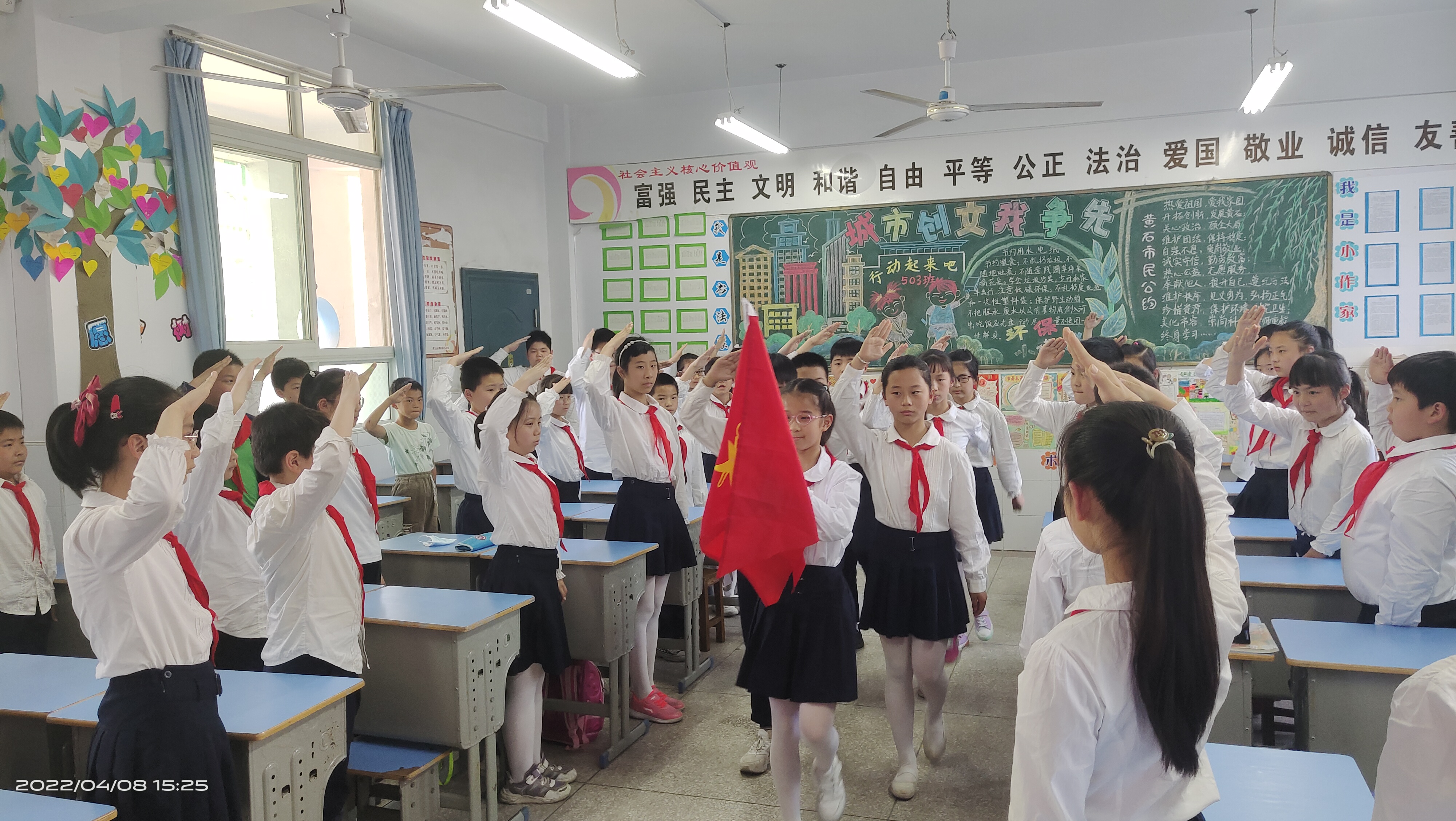争章活动期间,队员们热情高涨,参与学校组织的“拥抱在春天 环保记心间”环保志愿服务活动、清理社区垃圾、争当小小创文志愿者、讲雷锋故事和争当“红领巾小健将”等活动。同时,各中队根据年级争章要求,通过照片、作品、音频、视频、打卡等多种方式进行考章。