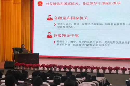 7月31日下午,作为主讲者,他参加了由浪卡子县人大和司法局普法办联合举办的《民法典》知识讲座。围绕习总书记关于广泛开展《民法典》普法工作的重要指示,胡律师深入浅出地阐述《民法典》出台的背景、意义和特点,结合多年的办案经验认真分析了《民法典》中的总则编、物权编、合同编等7大编中的重点内容,着重讲解了法典中的亮点法条,并就行政机关及人大代表如何贯彻落实民法典提出建议。