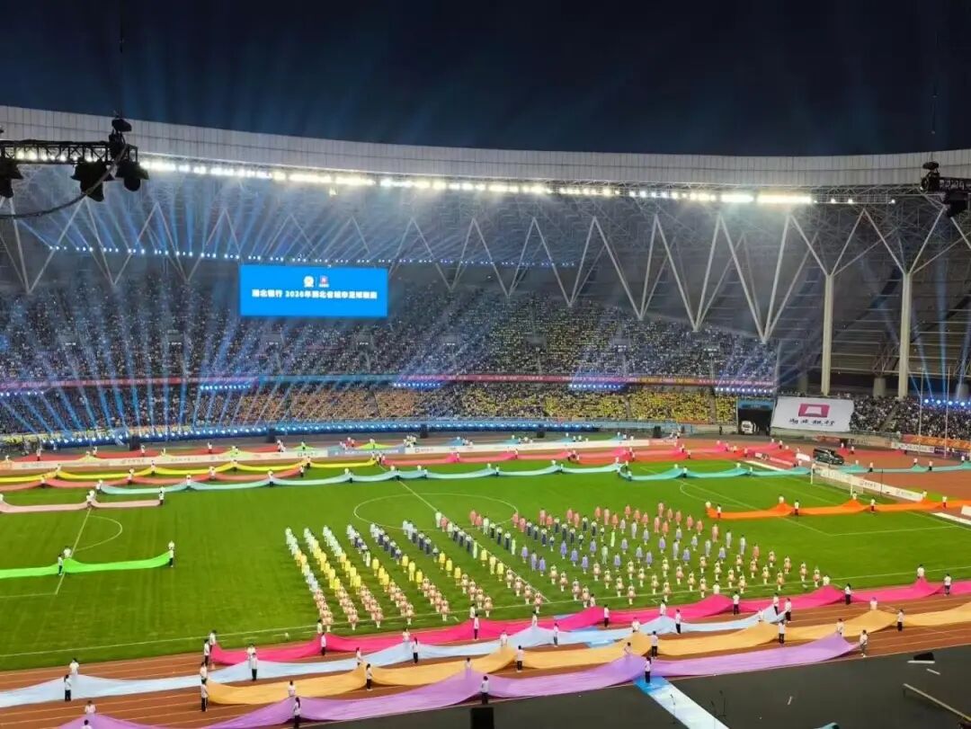 湖北师范大学文理学院:500名志愿者以气势恢宏的绸带舞为赛事盛大启幕,舞动的绸缎如流动火焰,将青春热忱与足球激情完美交融,用昂扬姿态为揭幕战注入满满活力,成为开幕式上最亮眼的青春风景。